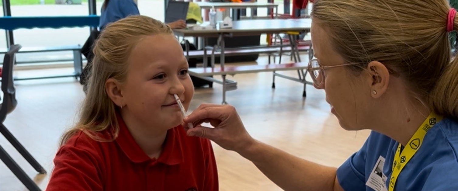 Bydd eich plentyn yn cael eu tywys i’r stafell gan athro neu aelod o staff a bydd eich plentyn yn eistedd gyda un o’r nyrysys imiwneiddio neu weithiwr cymorth iechyd profiadol. Bydd y nyrs neu weithiwr cymorth iechyd yn cyflwyno ei hunain ac yn esbonio i’ch plentyn beth yw’r frechlyn ffliw a sut mae’n cael ei weinyddu.